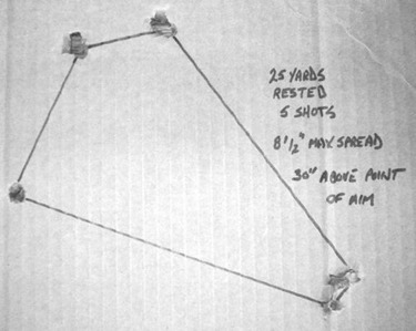 I shot the pistol for accuracy rested at six yards and later 20 yards with results similar to Ralph Hagan’s tests of the original gun. I shot two groups at each distance. Vertical alignment of the sights was complicated slightly by the cover slide’s tendency to move up and down as it bears against the retracting guide pin on the top of the cocking piece. Once I noticed that it settled back into bottom position just before let off, it wasn’t a problem. I also found that it is better to pull the trigger with two fingers (i.e. left and right trigger fingers) as it helps to steady the gun against the forces of my white knuckled vise-like hold on the small grip frame.