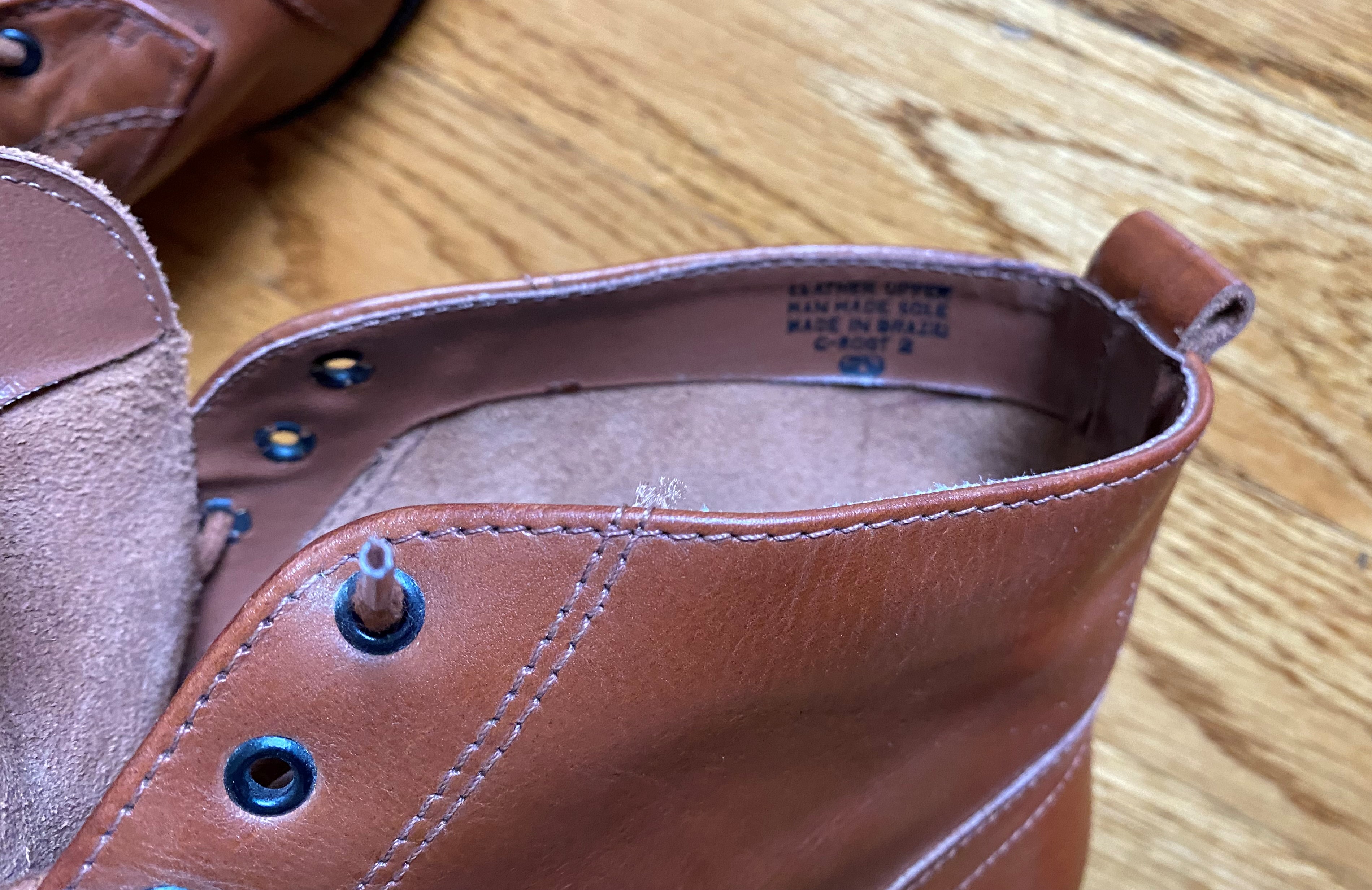 New production, unworn, lace-up shoes in the “above the ankle” style common for 50 years among men and women for civilian, utility wear. Leather uppers. The shoes are marked as size 9-1/2 Wide, but I am not so sure about that, so I have measured them for you. The sole measures 3.5” across the sole at the widest point and is 10.75” long. If your foot is bigger than that, these shoes won’t fit you. No returns.