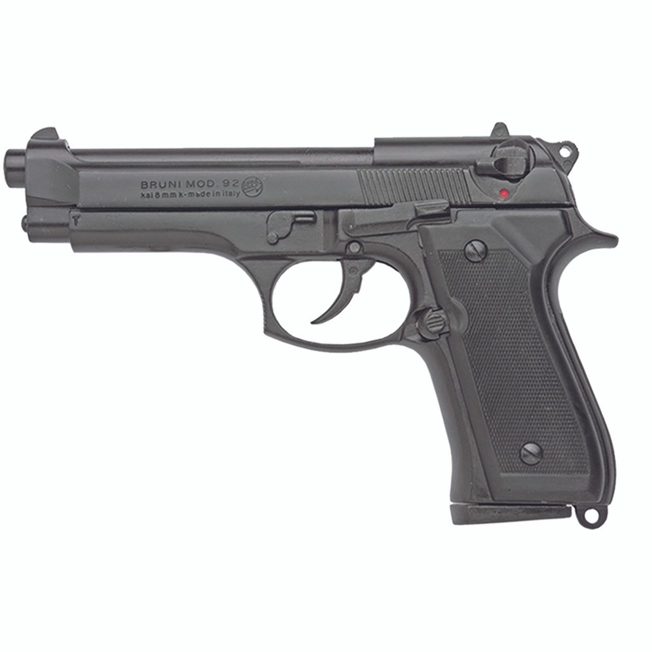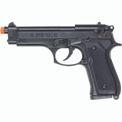 This classic modern military firearm is the type used by U.S. armed forces and many police departments. This model features precision metal construction with authentic working single and double action. Release the clip, load the 9mm or 8mm blanks, reload the clip, pull back the slide and commence firing. This blank gun is as seen in the movies, TV, and used extensively in law enforcement training. It comes in blued finish.