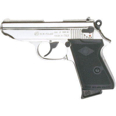 This is the style automatic that agent 007 used the James Bond movies. Model will recycle five 8mm blanks as fast as you can full the trigger. Model features composite checkered grips and removable clip and working safety. Model is available in a blued or deluxe nickel finish.