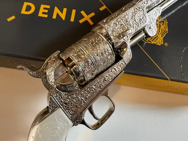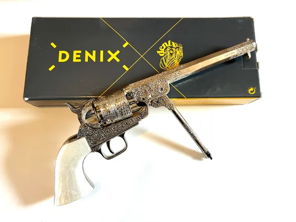 Civil War M1851 Engraved Silver with Faux Pearl Grips Navy Pistol, Denix Non-Firing Replica