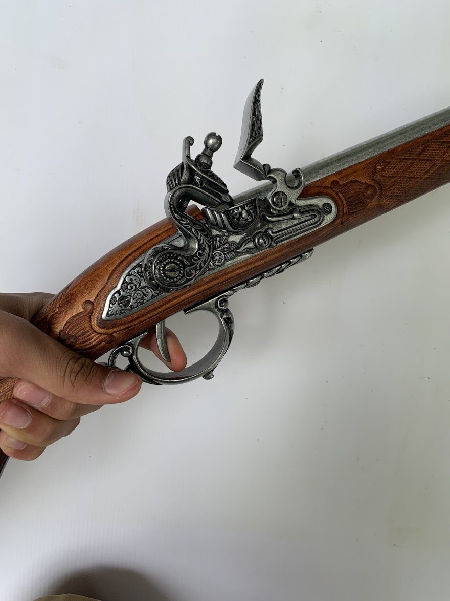 One of our favorites! For the price you can’t beat this piece. Based on the 1807 French flintlock, this replica model gun features enticing engraving throughout the woodwork, furniture and butt plate and includes the Napoleonic Crest on the stock. Great for display, theater / movie props or reenactment.