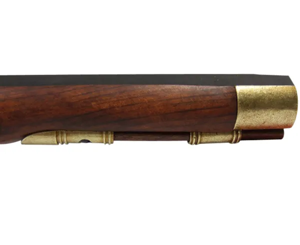 This classic Kentucky Flintlock Pistol was one of the first produced in the USA in the 18th Century, and a common back-up sidearm of soldiers, militia, scouts and frontiersmen of Colonial America. This Flintlock features a full wood stock and brass patina fittings.