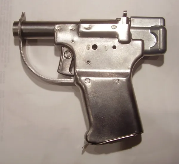 FP-45 Liberator Pistol Study & Cutaway Models – Right Side (LIMITED QUANTITY) For the advanced Liberator collector. VOCO’s FP-45 Liberator Pistol Advanced Study Model. These differ from the standard historical study model we sell in that a floor plate is spot welded to the bottom of the grip and the five dummy cartridges are glued in place in the manner they would be loaded in the grip. We sold off the original three study models used in product development for the project last year for $500 each. We’ve had a lot of requests so we made up a few more. This not a firearm and is not capable of firing. The barrel is made of two parts leaving no functional chamber as you can see from the photos. The front portion is solid with only the first inch bored out to look like real bar. There is no replica packaging included in this display set.