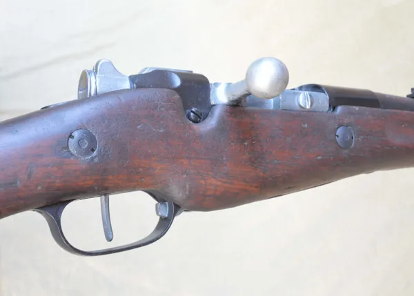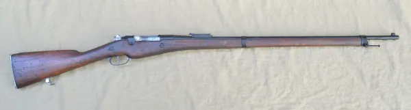 This is a highly detailed, non-firing /non-operational resin and wood, model of a French Fusil Mle 1907/15, more commonly called a Berthier rifle. Rifles of this type were used extensively in World War One alongside the more common Lebel rifle by the French Army and the French Foreign Legion prior to the war. The Berthier was also used notably by the American negro troops of the 93rd Division assigned to the French Army which included the famous Harlem Hellfighters of the 369th Regiment, the 370th, 371st and 372nd Regiments. This was also the type of rifle use by Gary Cooper during the 1939 film classic Beau Geste which portrays French Foreign Legionnaires.
