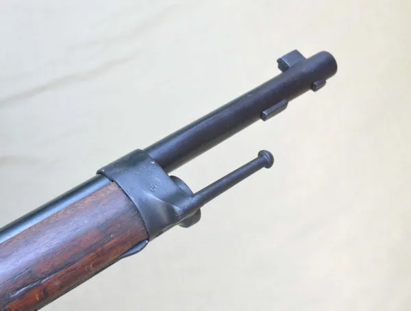 French troops liked the light weight and fast loading of the Berthier, but disliked its three shot magazine capacity which was a handicap in close combat. The Berthier used the same bayonet as the Lebel. Original bayonets will fit our model. The first seven inches of the barrel are reinforced with a steel rod cast inside for this purpose.
