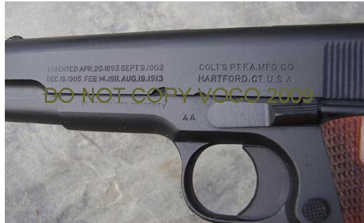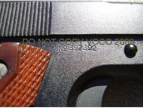 M1911 WWI Issue Colt .45 ACP Caliber Pistol Parkerized Finish. Diamond pattern grips.