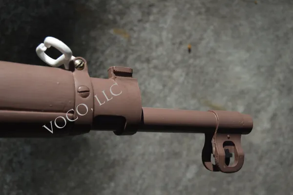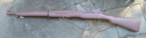 This full scale model is cast from a mold of an original World War One dated rifle. It is made of strong, impact resistant, urethane plastic. The plastic is slightly flexible making it much more durable than typical hard plastic resin casting that tend to crack or shatter if dropped on hard surfaces. Surface details reproduction is excellent. Dates stamps on the barrel, the arsenal marks on the receiver and even the grain of the wood are exactly reproduced. This model weighs only 2 lbs 12 oz. (1.24 kg) making it much easier to display on mannequins in your exhibit or use in living history programs or parades/honor guards. The main body of the model is a single casting with the front and rear sights and stacking swivel cast separately. The steel sling attachment points on the buttstock and front band are genuine so the will not bend or break off when the model is exhibited or carried with a sling. The front six inches of barrel is re-enforced with a 1/4″ steel rod to keep it rigid if you need to exhibit it with the M1917 bayonet (also available from us in a strong light-weight urethane plastic.)