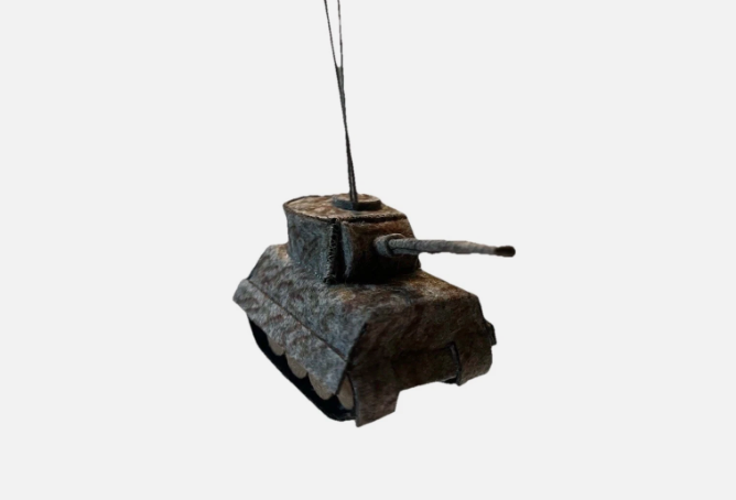This is an intricately handcrafted German Panther Tank felt model ornament. It can be used as a collectible ornament / decor or as a soft toy for little ones. It is handmade by women artisans in Kyrgyzstan using natural fibers and eco-friendly resources.
