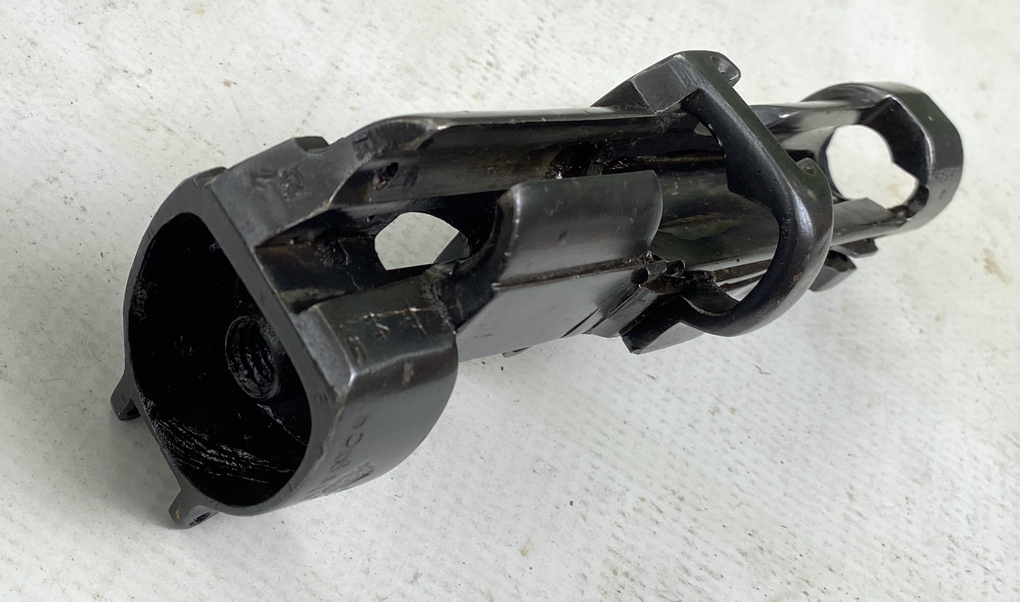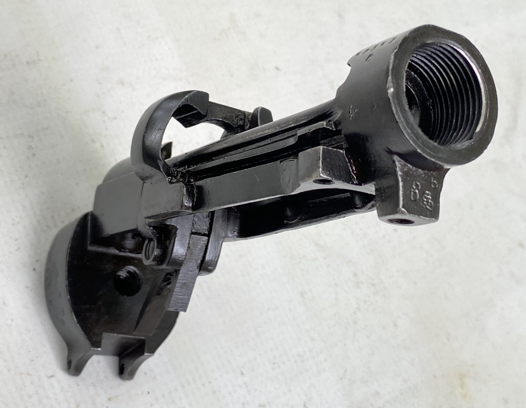 95% bluing. No pitting. Number overstamped on right side of socket. Shotgun tray in place. Excellent to use as is.